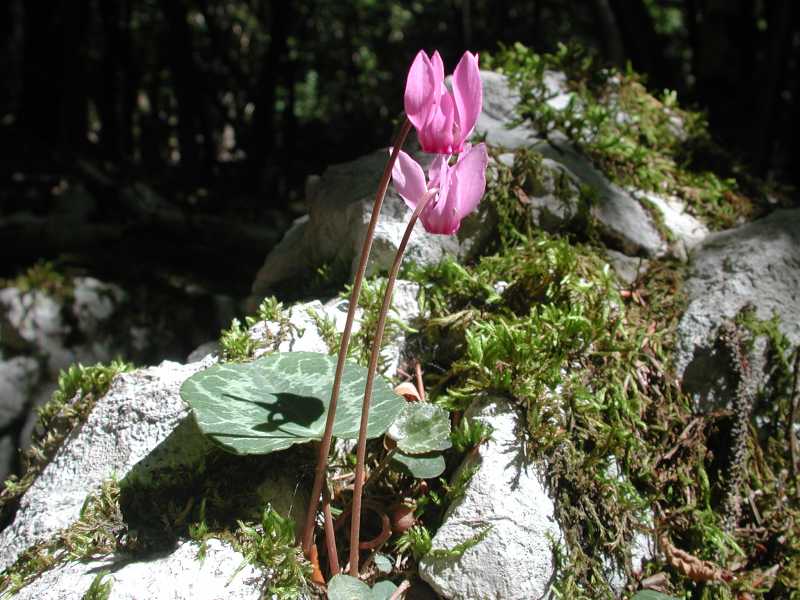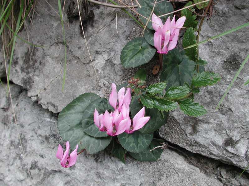 Na škrapjah ciklame dobro uspevajo. V skalnih vdolbinah