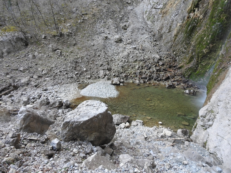 Pogled na tolmun z skal na levi strani,