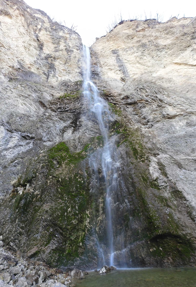 Vode je izredno malo, razprši se in ne pada na vznožje slapa,